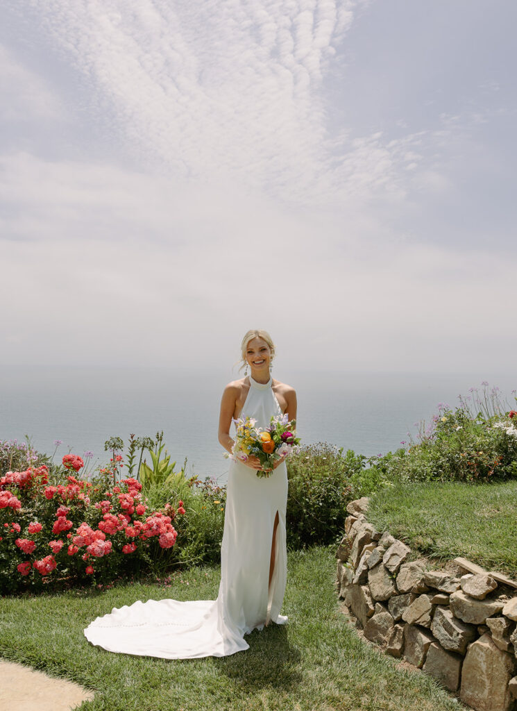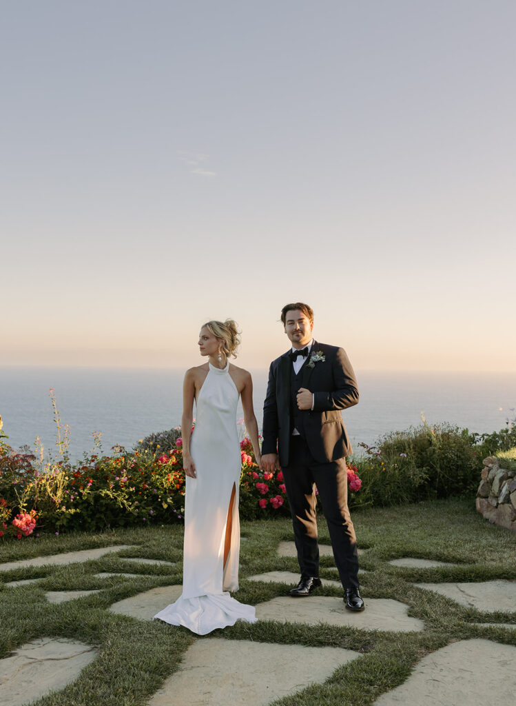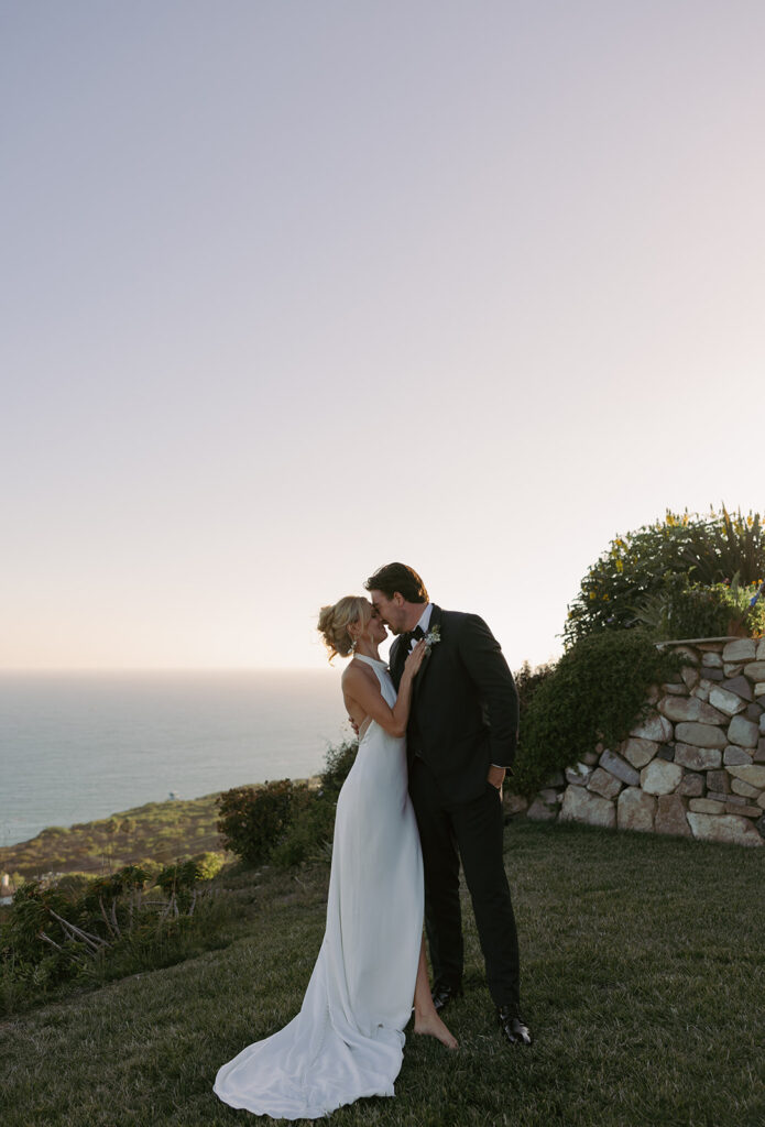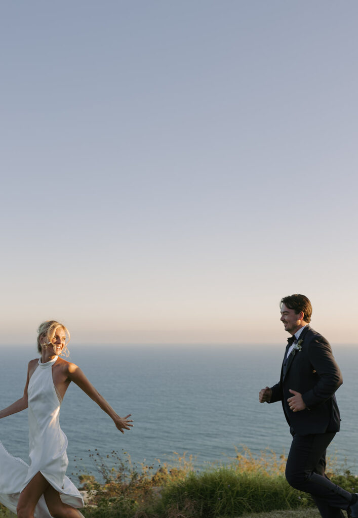 Savannah and Max’s day was nothing short of perfect . The Wedding day was set on a cliffside in Malibu where ocean views are on the right, mountain views on the left, and the sun sets over the Pacific Ocean. The details and tables capes tied into the natural elements of this venue, creating an overall bright and coastal feel for this wedding day. One of Savannah and Max’s main priorities was to be intentional on their wedding day, spending as much time together and soaking up every part of their day.