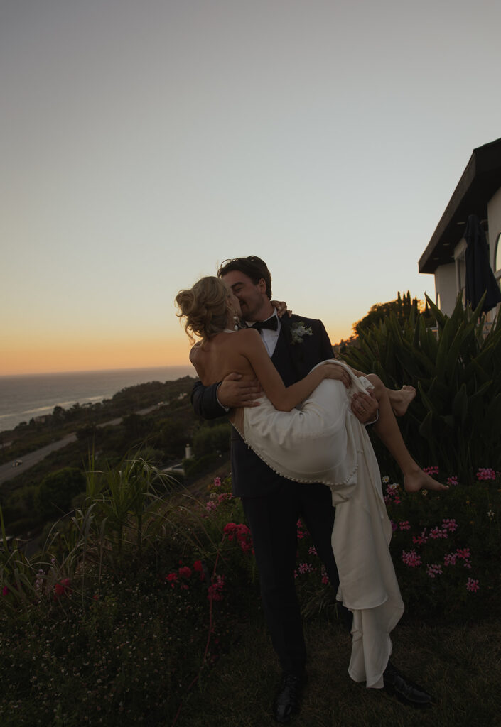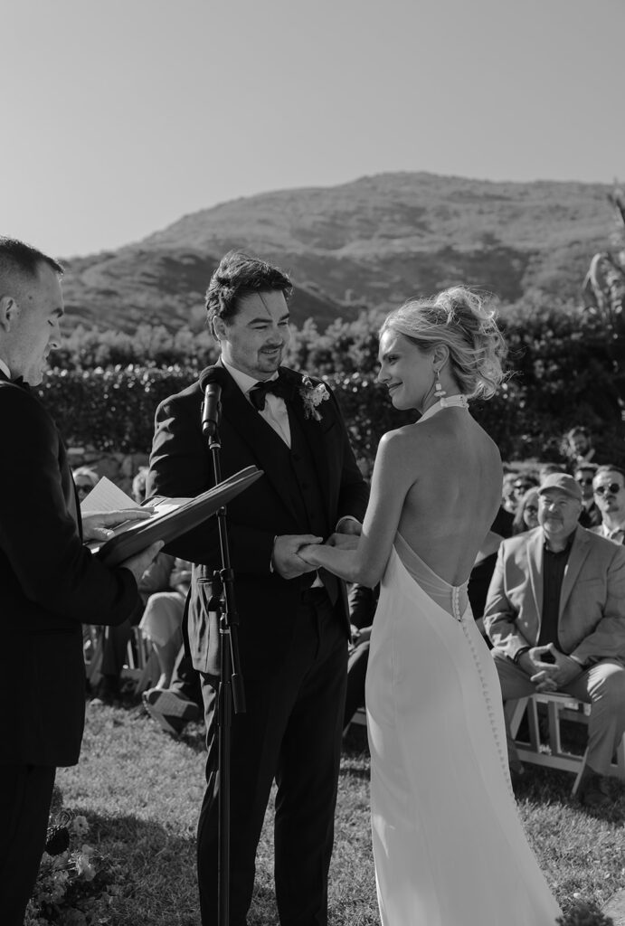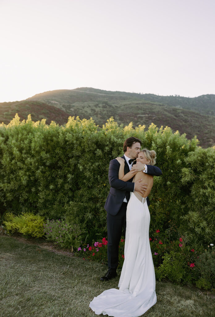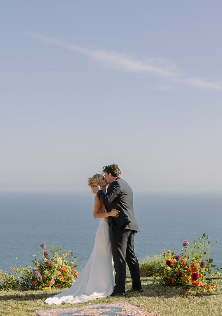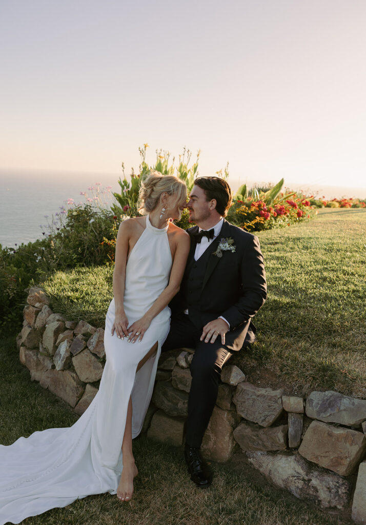 Savannah and Max’s day was nothing short of perfect . The Wedding day was set on a cliffside in Malibu where ocean views are on the right, mountain views on the left, and the sun sets over the Pacific Ocean. The details and tables capes tied into the natural elements of this venue, creating an overall bright and coastal feel for this wedding day. One of Savannah and Max’s main priorities was to be intentional on their wedding day, spending as much time together and soaking up every part of their day.