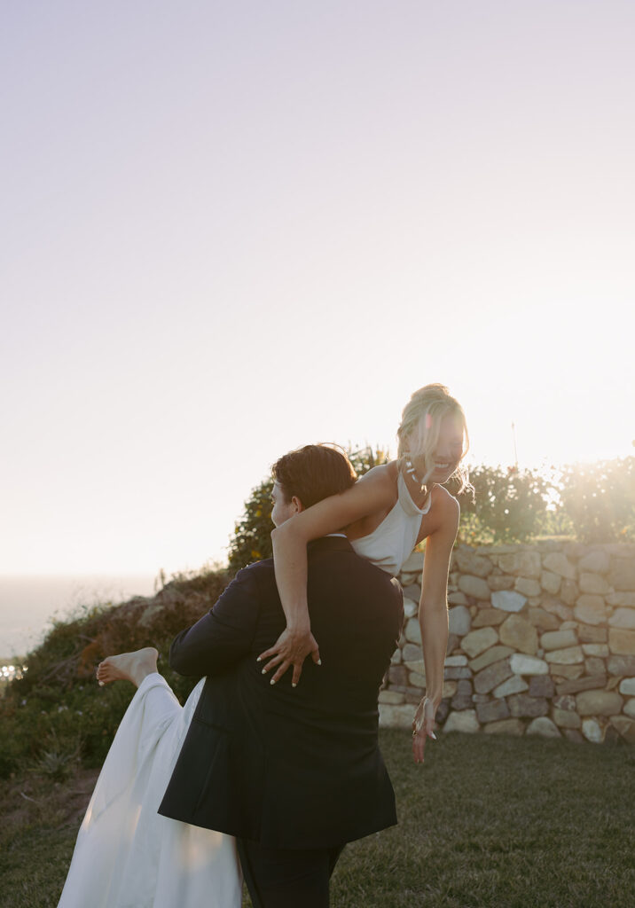As the sun began to set over the Pacific Ocean, family and friends came up to share a toast to the Newlyweds. The sound of laughter over the memories shared, and the clinking of glasses raising a toast echoed over this cliffside. Dancing followed for the rest of the night, and Savannah slipped into a special reception dress! She had taken her Moms wedding dress to be repurposed into something she could dance the night away in, and of course to surprise her Mom with. The night came to an end with a classic bubble exit and all their closest family and friends sending them off. This was one of those days where you just feel the joy radiating. Savannah and Max were such a sweet and intentional couple, & capturing their stunning wedding day was so much fun. I would love to capture another California wedding sometime soon. If you’re in search of photographer who captures your love story in an authentic and documentary style then I’m your girl! Fill out an inquiry form on my contact page so we can’t start planning your beautiful day!