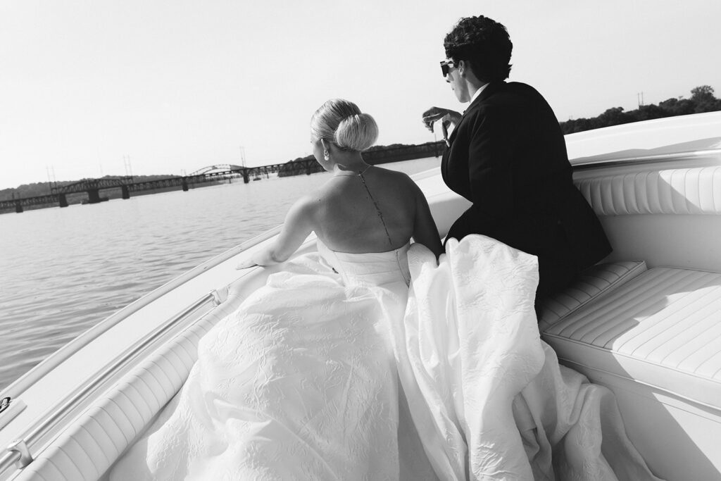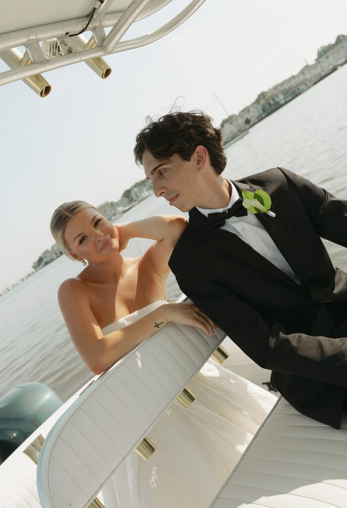 Their ceremony was a deeply intimate and personal one. Billy’s Dad officiated and their friends led the crowd in worship to celebrate their union. When the ceremony was over, cocktail hour began while the couple snuck off for a surprise boat entrance into their reception. We captured some of my favorite newlywed portraits while out on the water which was a fun addition to their gallery and also gave the couple a few moments away from the crowd to enjoy themselves.