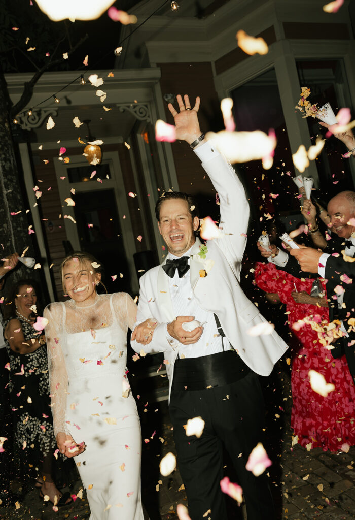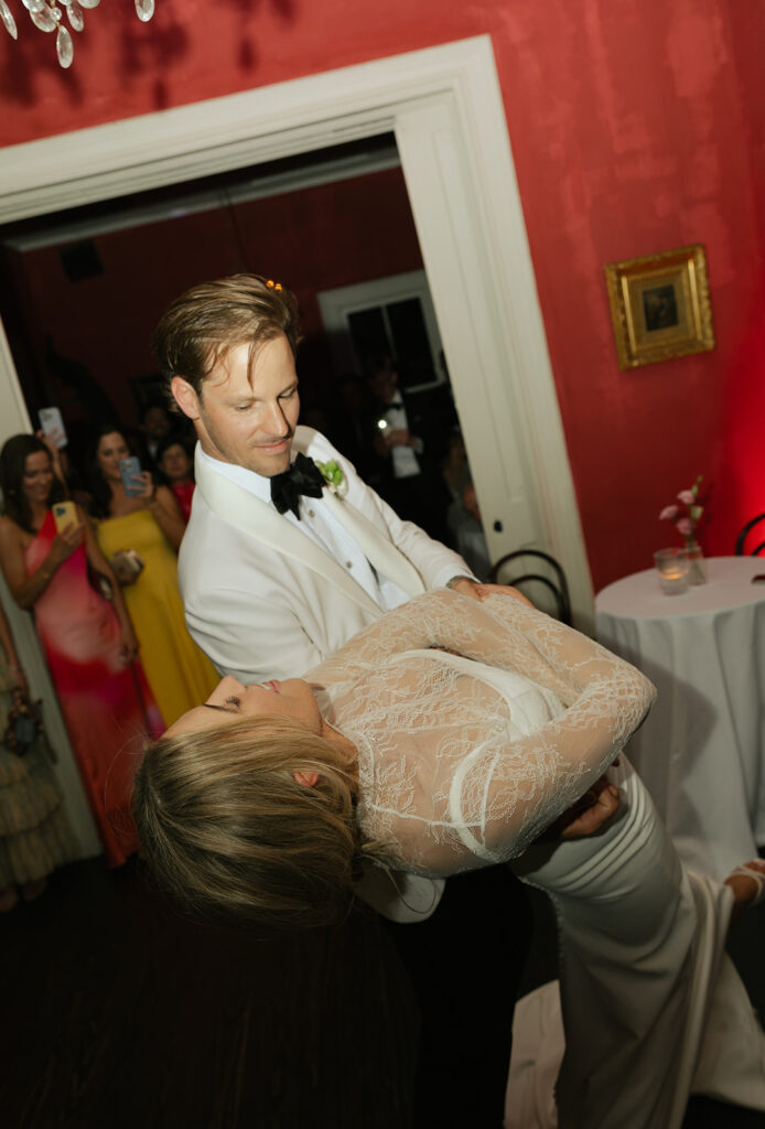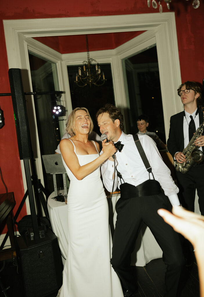 To end the night a Dj and live instrument combo set the bar high as far as receptions go. The whole room was packed around the gleaming couple. What I love most about this venue is that Justine’s is an old house that has been redone. It likely was someone’s home at some point where dancing, and laughing, and celebrations happened. Now it still has the same purpose just in a different way, it feels very full circle. If you’re looking for an intimate wedding venue in Austin this may be the perfect one for you 2026 wedding.